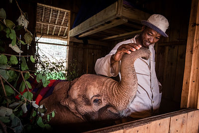 At first, Toto struggled to fall asleep inside his stable. On these nights, Joseph and Sammy would drag his mattress out to the lawn, where they rested beneath the star-studded sky. Only once the little elephant had settled into a dreamlike state did they shepherd him back inside, where he slept soundly for the rest of the night. We also came to realise that Toto has a real taste for country music. Come bedtime, you only need to follow the wafting sounds of country crooners to find Toto’s stable, where Joseph’s small radio is perched.