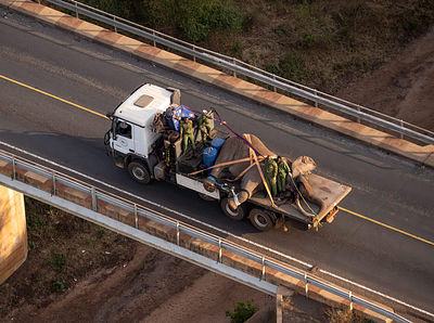 Head Keeper Benjamin raised the alarm and alerted the KWS warden to come witness what was unfolding. KWS called for a rescue, as with neonates, time is of the essence. The SWT helicopter made a quick journey to Ithumba from Kaluku, where it picked up the calf — who, given his tiny size, easily fitted inside — and flew him to our Kaluku Neonate Nursery. By sunset, he was safely ensconced in a warm stable.